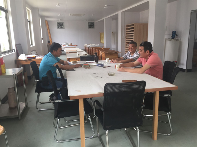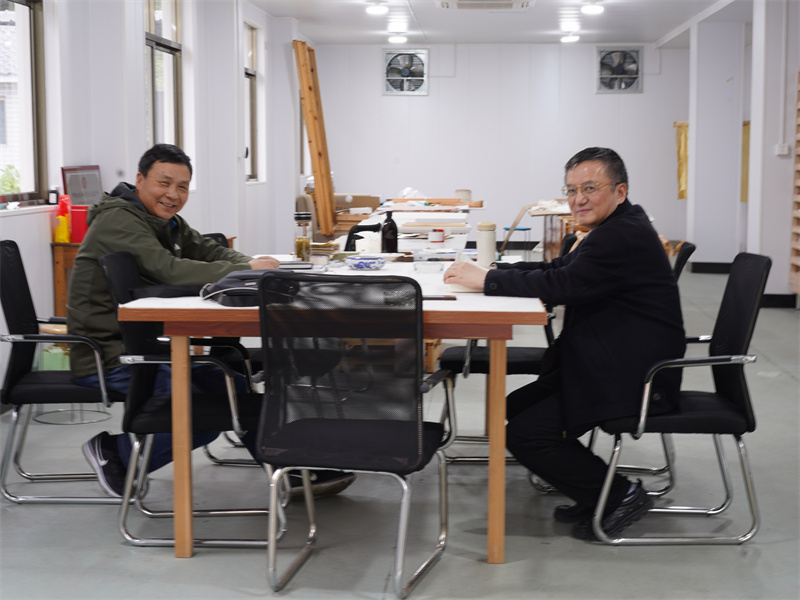浙江省文化廳新安傳統文化調研,畫家樓森華、樓秋華和版畫藝術家王超在公司。徽州楮皮紙